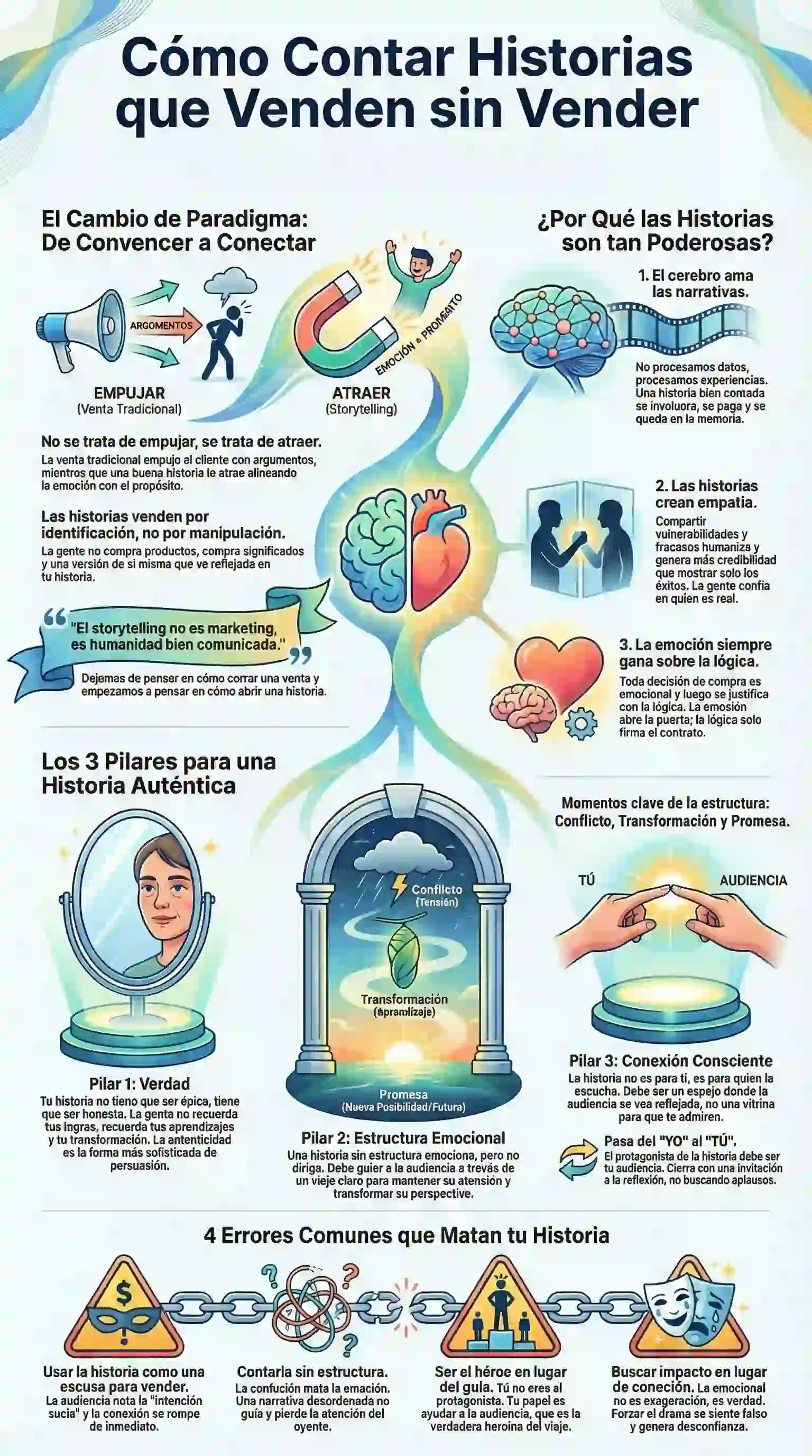 Cuando tu historia es real, la venta deja de ser una persecución para convertirse en una consecuencia natural. La historia correcta no empuja al cliente; lo invita a entrar.
