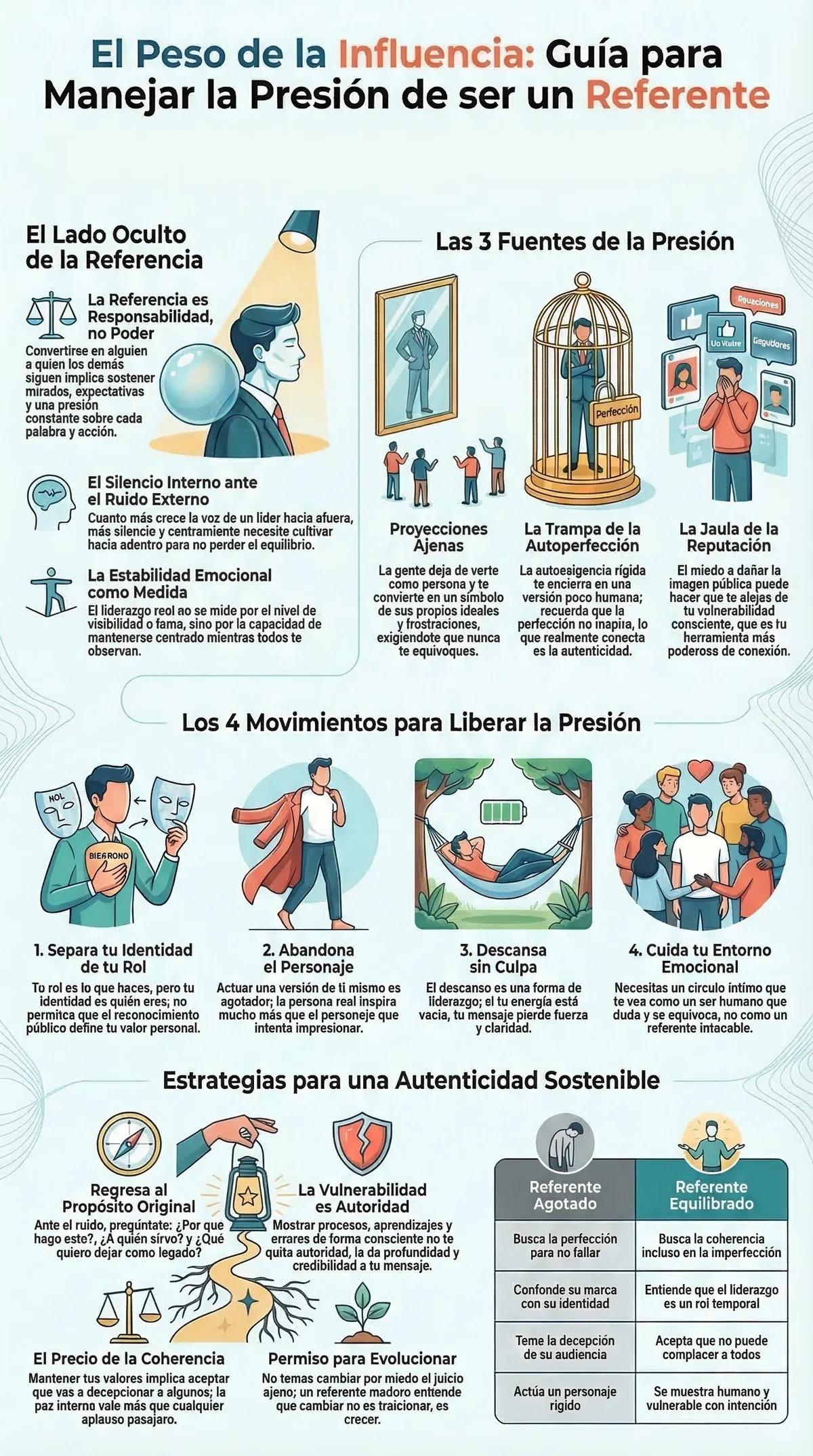 El espejo emocional: Mantén un círculo pequeño de personas que no te vean como el referente, sino como el ser humano. El referente sin espejo termina hablando solo y pierde la perspectiva de la realidad.