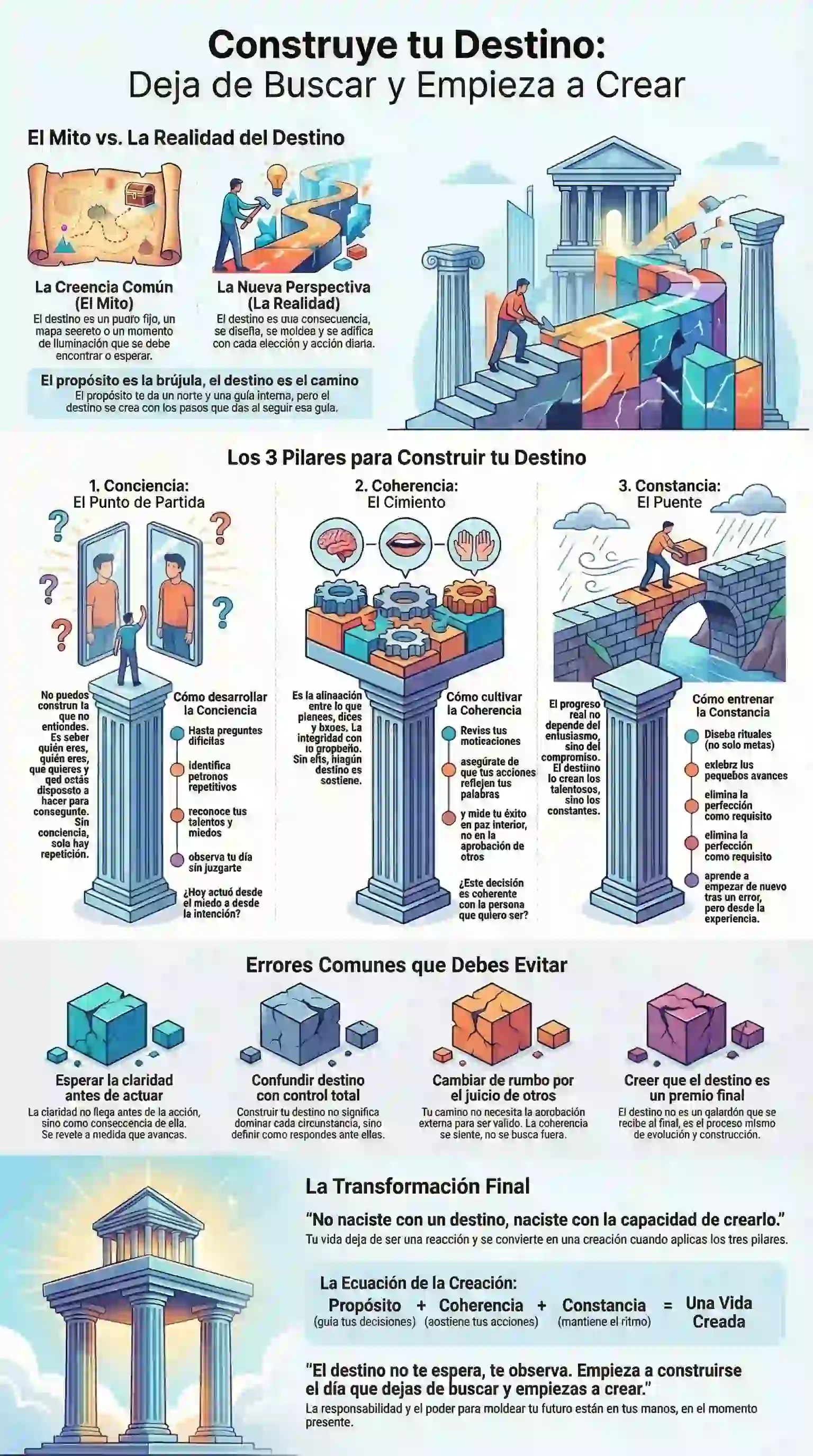 Pero esta idea, aunque romántica, nos coloca en un rol pasivo. La verdad es mucho más poderosa: el destino no es algo que encuentras, es algo que activamente construyes, diseñas y edificas con cada elección que tomas. Este cambio de perspectiva te devuelve el control y te transforma de un buscador a un arquitecto de tu propia vida.