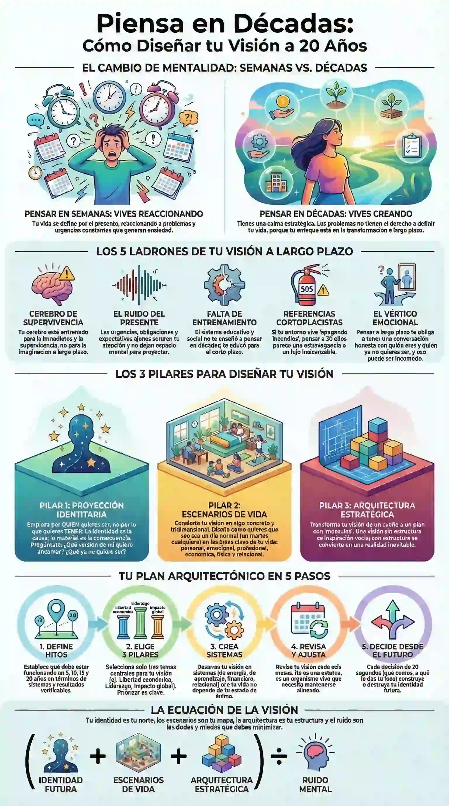 Este artículo destilará las ideas más poderosas sobre cómo diseñar una visión a 20 años que te dé calma estratégica, una claridad profunda y una dirección inquebrantable para convertirte en el arquitecto de tu propio destino.
